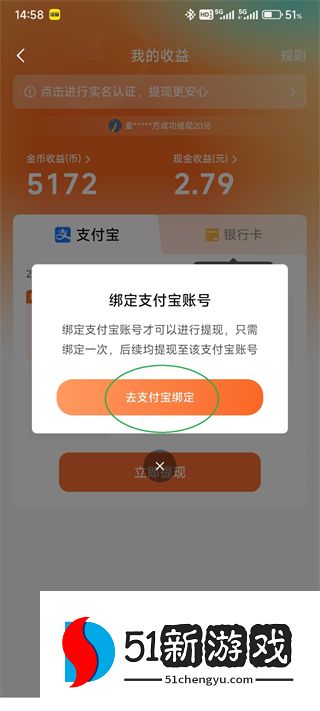 6、点击弹窗下方的“去支付宝绑定”。