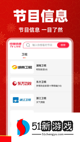 电视直播免费管家app是一款可以免费看全国电视直播的软件。让众多喜欢电视直播的用户能够获得关于中央电视台、卫星电视台、地方卫星电视台等节目的非常详细的信息。在这里,你可以得到不同的节目内容。在未来,用户可以关注自己感兴趣的节目更新,也可以了解更多的节目信息,让你掌握更多重要的节目内容!用户可以通过本软件获取最新的电视节目预览、节目内容和节目搜索等功能,满足用户的观看需求,软件界面简单,操作方便。