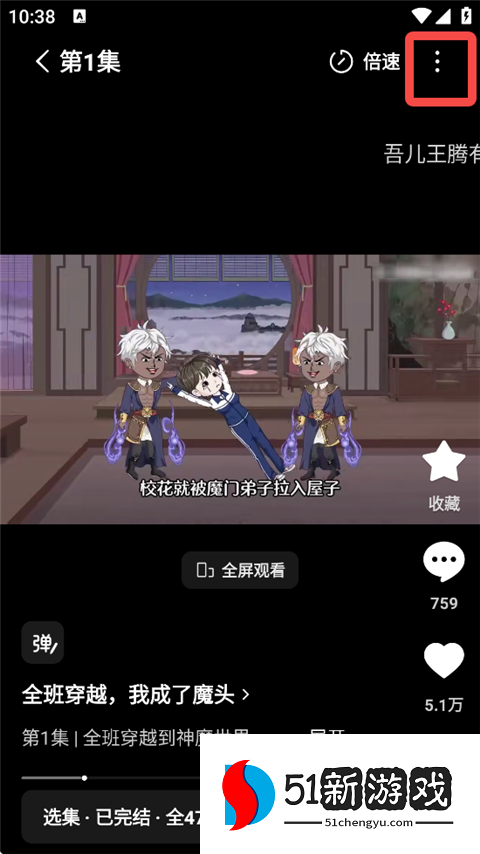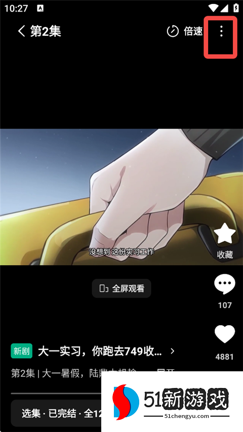 1、打开红果免费漫剧app,进入剧集播放界面,点击右上角三点标识。