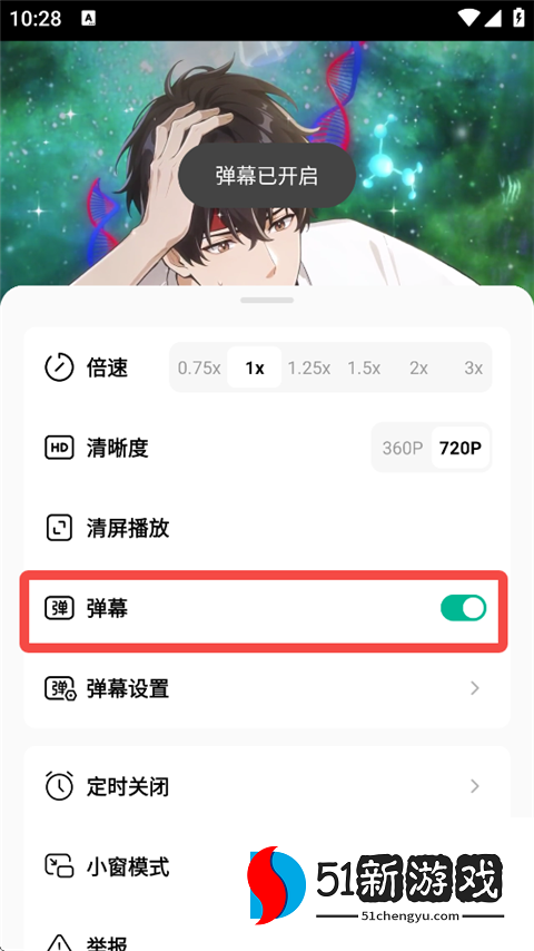 2、把弹幕开启。