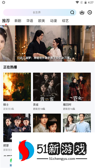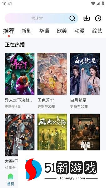 1、软件中的首页可以看到各种热播剧集,还有着多个板块,新剧、华语、欧美、综艺等