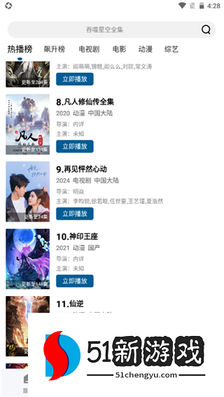 2、这里面还内置了影视榜单,最近热播的影视都会在这里面进行排列