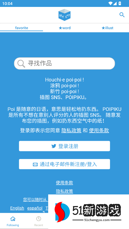 1、打开poipiku,如下图所示,本款软件打开就是中文模式。所以不需要切换啦。