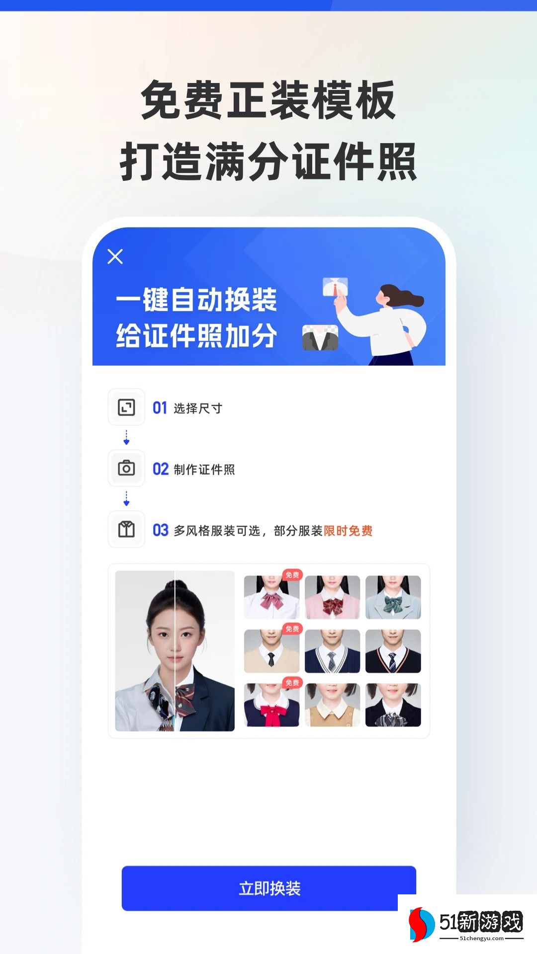 智能证件照是一款受欢迎的证件照制作软件,拥有丰富的证件照规格,可以在线制作各种证件照,还能及时切换照片的背景颜色,服装等,自由打造个性化的照片风格,能完全满足所有使用需求,还具有个性化的界面设计,无需任何经验即可上手使用,允许用户轻松管理并编辑证件照,自由享受智能化的证件照制作服务,还集合了多样化的证件照模板,包括求职、研究生入学考试、公务员、签证等各种照片,有需要的用户欢迎来本站下载软件。