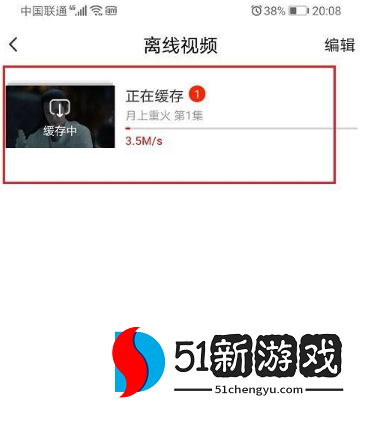 2、进入视频播放界面后,点击缓存,如下图所示。