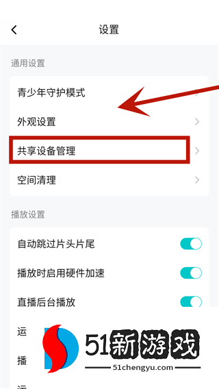 3、在新页面上,找到并单击“共享设备管理”选项。