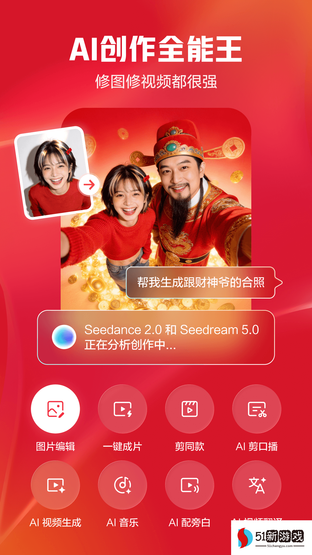 3、智能功能:支持智能字幕生成、一键电影制作、曲线变速等便捷功能。
