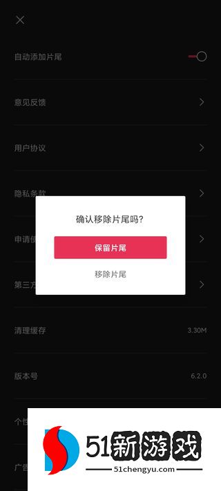 3、打开剪切设置界面,点击“自动添加尾部”右侧的按钮,关闭自动添加尾部功能。