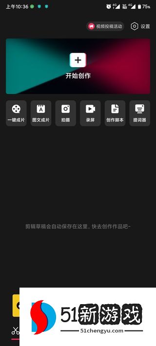 2、打开剪映APP首页,点击右上角的“齿轮”图标。