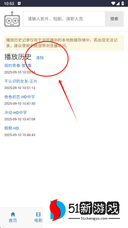 2、然后可以看到这里有个播放历史选项,点击清楚即可。