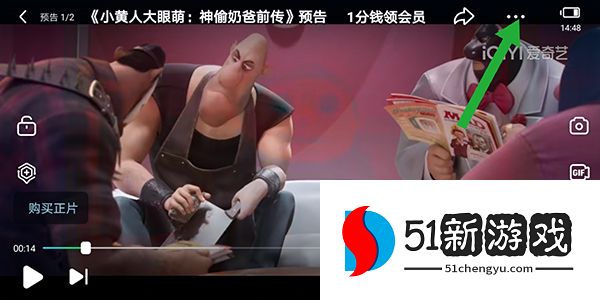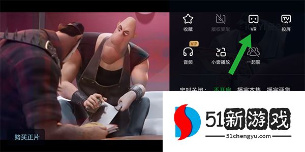 5、点击弹出选项框中的VR图标(如下图中绿色箭头所示),并将其与爱奇艺官方提供的VR设备配对。这将改善观看体验。