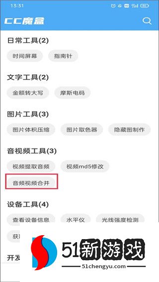 1、打开app,你会默认进入到【分类】板块,在这里你会看到有很多的功能,以“音频视频合并”为例。