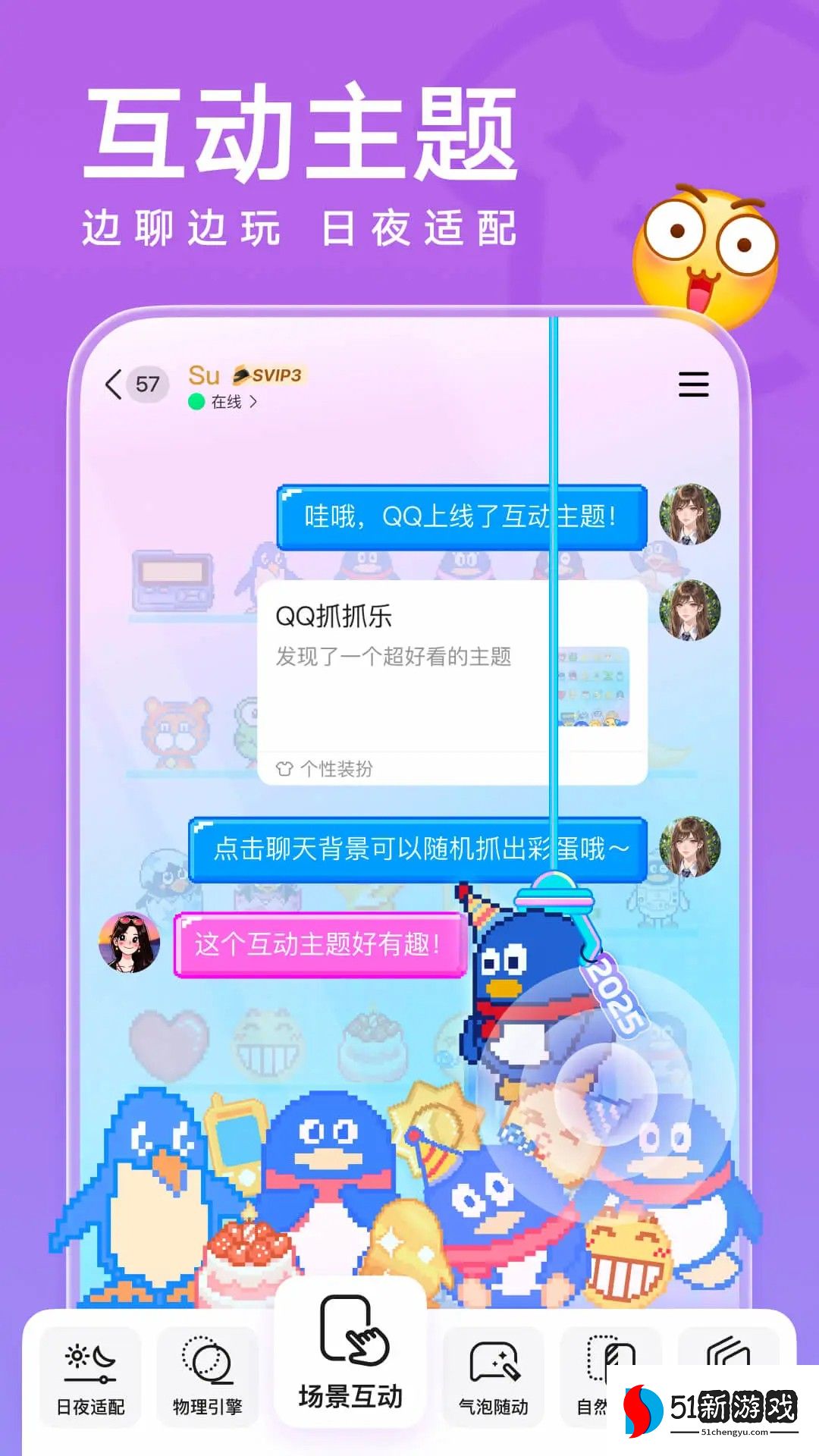 - 互动主题上线,可边聊边玩,支持日夜适配、自然转场等多种效果;