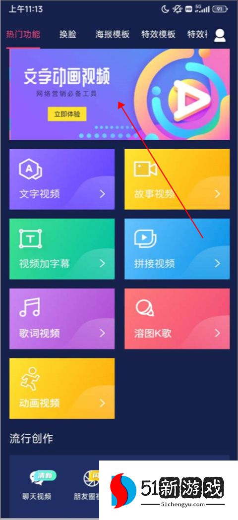 1、下载安装好文字动画视频软件,进入软件,点击上方的文字动画视频,如图所示。