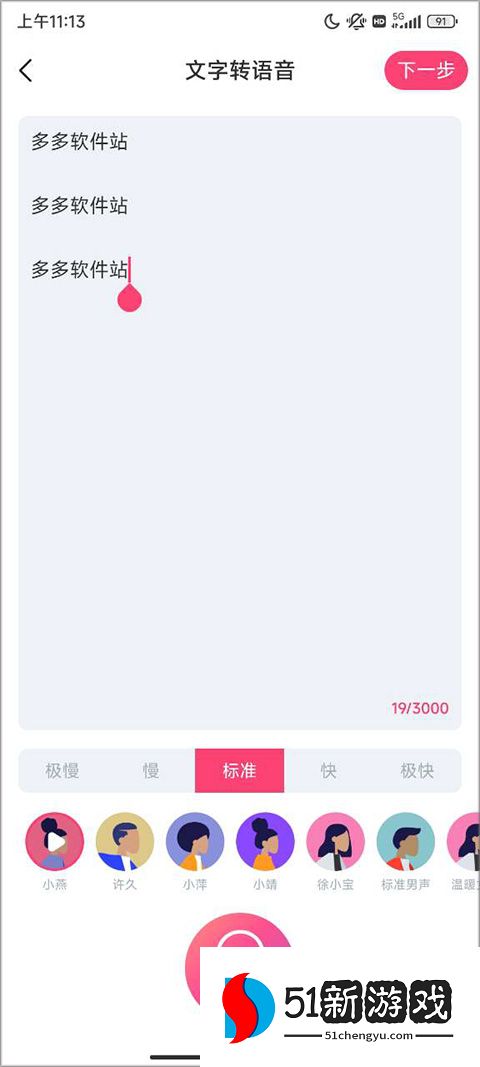3、以文字转语音为例,输入你需要说的,下方还可以调节音色和语速