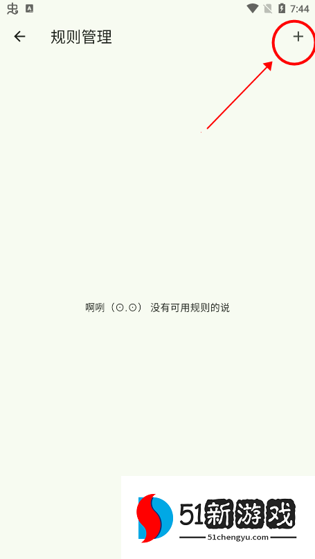 3、在规则管理页面,点击右上角“+”。