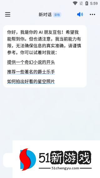 豆包是一款非常实用的智能聊天对话软件,拥有全新的对话页面,可以让用户直接输入文字来进行对话聊天,还利用尖端的人工智能算法,轻松为用户创造独特的智能对话体验,轻松享受流畅自然的聊天交流过程,能完全满足所有使用需求,还具有丰富的功能选项,无需任何经验即可上手使用,随时随地轻松查看并保存各种聊天历史,给用户带来全面的对话聊天体验,还能自动识别并精准分析输入的问题,快速准确的答案。