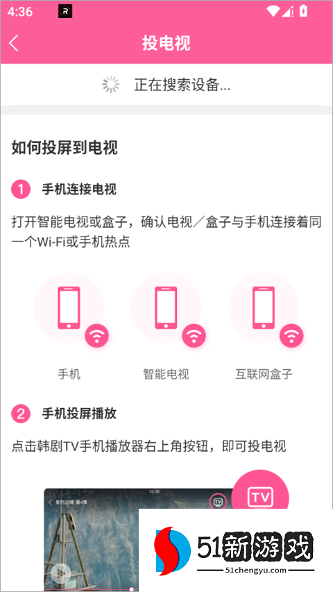 3、搜索屏幕投射设备,然后单击以找到需要投射屏幕的设备。(注意:您的手机需要与屏幕镜像设备使用相同的WiFi)