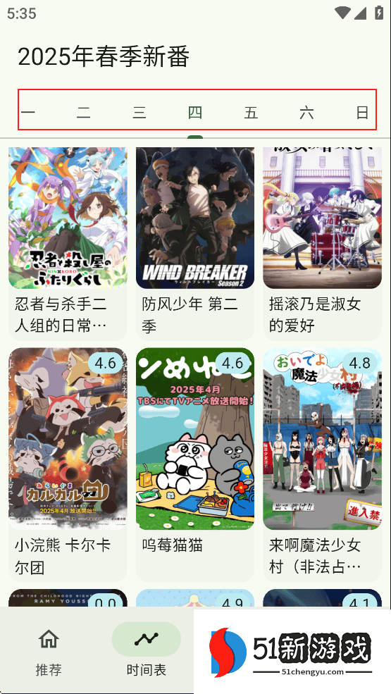 3、在“时间表”里面可以看到每一部番剧具体是周几更新,可以看的一清二楚。
