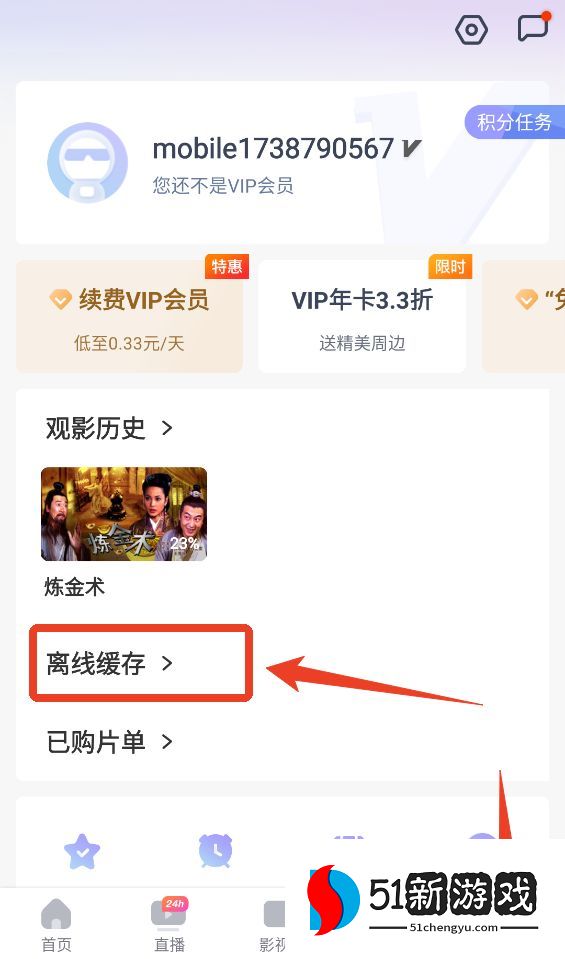4、下载后,您可以前往【我的】-【离线缓存】查看刚刚下载的电影。