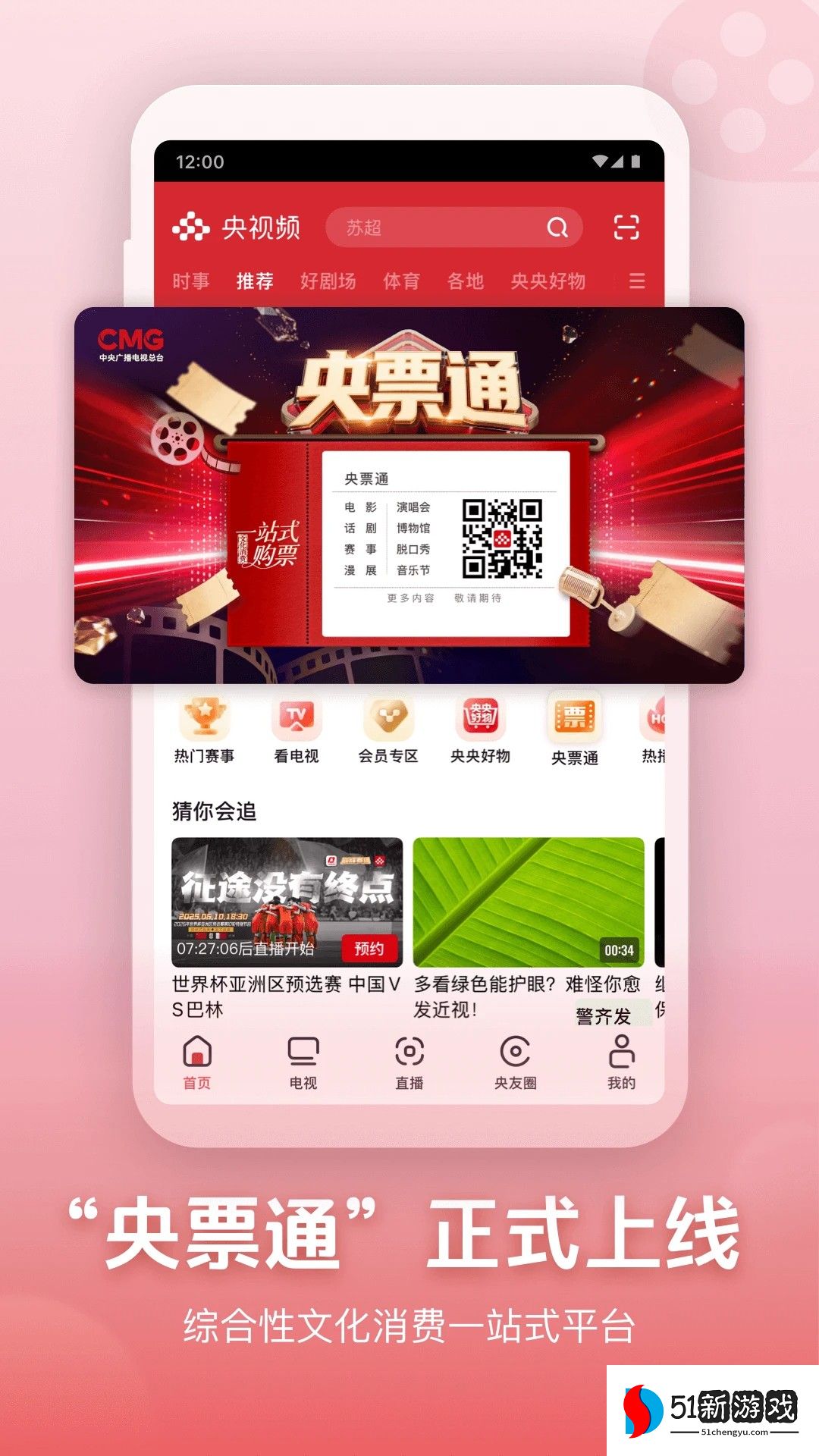 央视频是一款全新的手机电视直播软件,拥有丰富的电视直播频道,允许用户轻松进入首页中点播观看,自由观看感兴趣的影视剧集和内容,还集合了强大的搜索功能,可以输入影视名称来搜索查找,随时呈现各种高人气的电影,电视剧等资源,方便用户在线看剧观影,能完全满足所有追剧需求,还能实时记录追剧位置和历史,轻松免费播放精彩影视片段,自由享受流畅的追剧乐趣,喜欢看剧的用户欢迎来本站下载软件。
