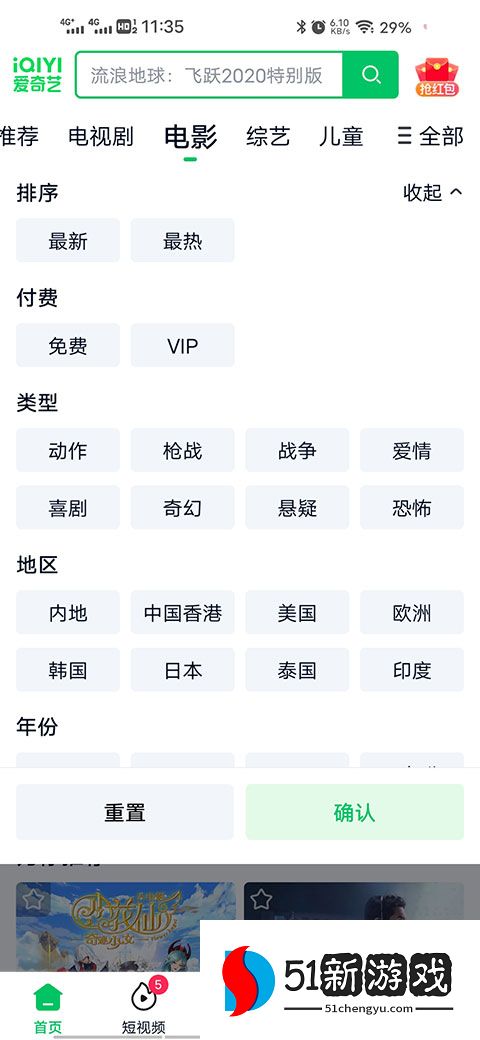 3、您还可以选择转到主界面上的电影部分,重置并选择您最喜欢的类型。